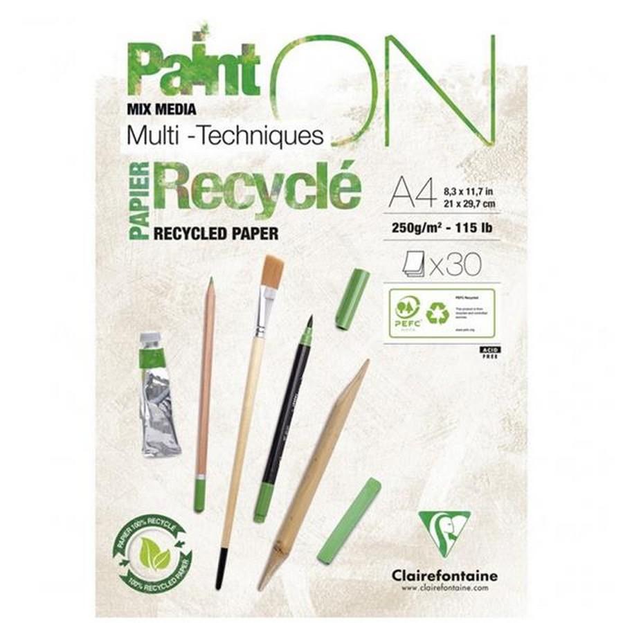 Il blocco Clairefontaine Paint'ON Recycled A4 è una soluzione di alta qualità progettata per artisti, studenti e creativi che cercano un supporto versatile per tecniche artistiche multiple. Realizzato con carta 100% riciclata extra bianca da 250 g/m², offre un perfetto equilibrio tra resistenza, assorbimento e resa cromatica, risultando ideale sia per tecniche a secco che a umido.