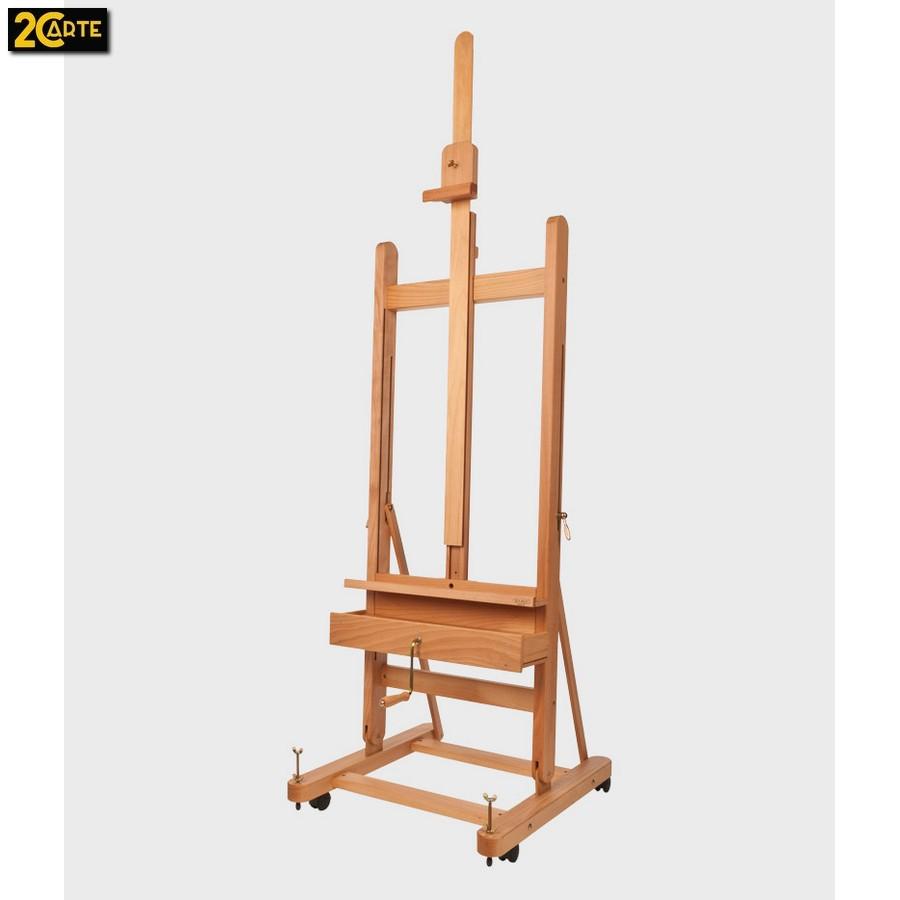 Mabef Cavalletto Pittore M/05. Il Cavalletto a Studio Mabef M/05 è un cavalletto per pittura costruito in massello di faggio evaporato oliato. Questo Cavalletto in legno è dotato di supporti sui quali è possibile poggiare la tela per dipingere. Il Cavalletto M/05 ha la regolazione dell' angolo di lavoro con sistema anti-ribaltamento. I Cavalletti Studio sono ideali per la pittura indoor. Garantiscono una grande stabilità, creati per rimanere nello stesso luogo, ma possono essere dotati di ruote e quindi trasportabili. Generalmente dotati di mensole e cassetti utili al pittore per poggiare i materiali durante la realizzazione del dipinto.