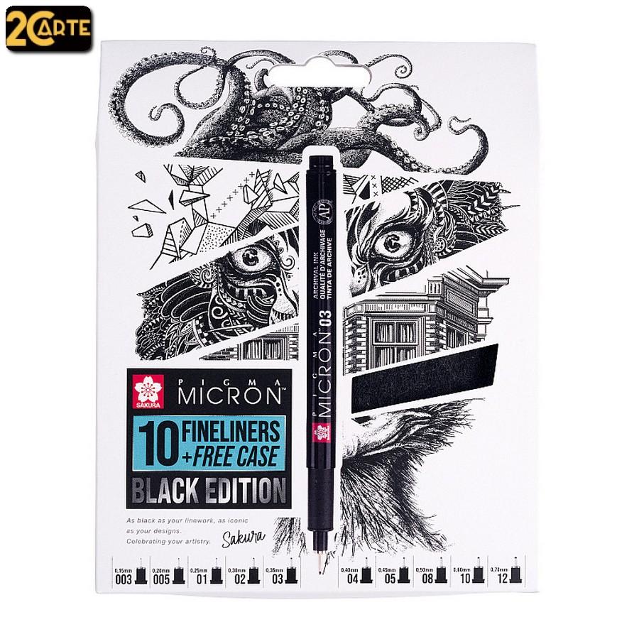 I fineliner preferiti dai designer, i Pigma Micron, arrivano ora in una raffinata Black Edition. Non perdere questa elegante versione completamente nera della penna iconica di Sakura, dotata della celebre e affidabile inchiostrazione nera Pigma. Il set Black Edition Pigma Micron include anche un pratico astuccio in feltro in omaggio.