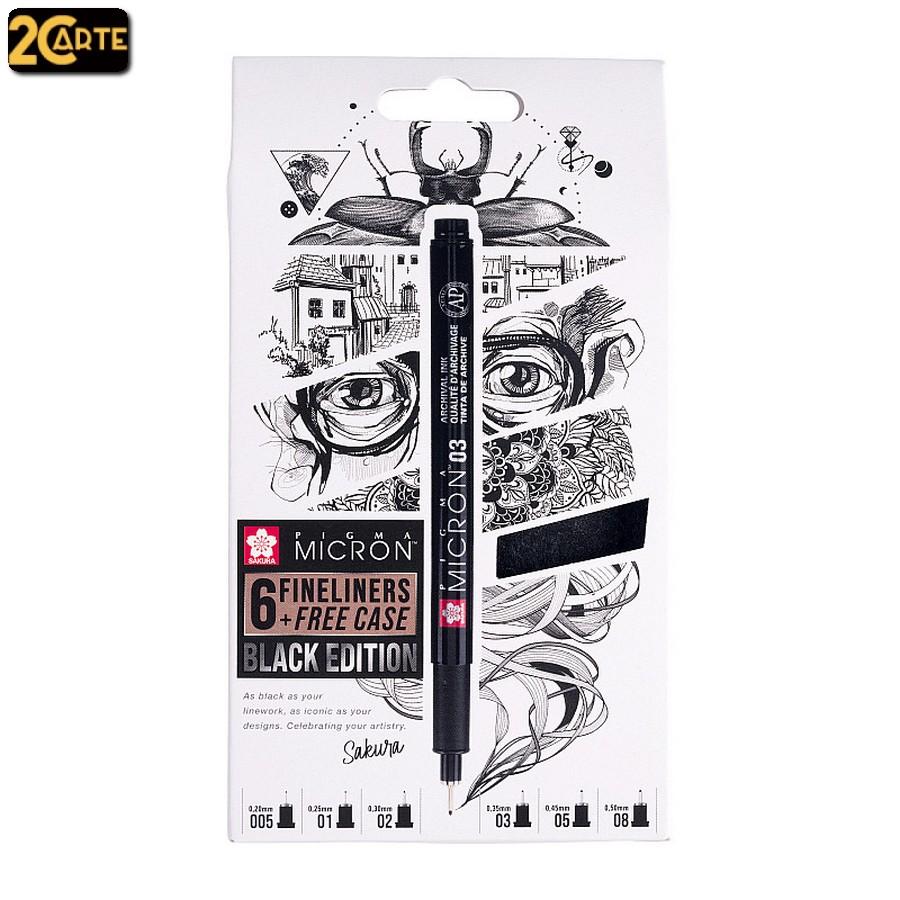 I fineliner preferiti dai designer, i Pigma Micron, arrivano ora in una raffinata Black Edition. Non perdere questa elegante versione completamente nera della penna iconica di Sakura, dotata della celebre e affidabile inchiostrazione nera Pigma. Il set Black Edition Pigma Micron include anche un pratico astuccio in feltro in omaggio.